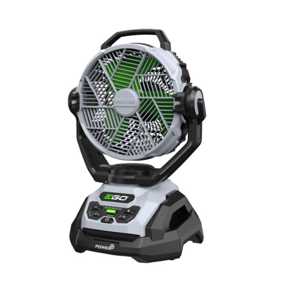 Njegov tih, a učinkovit motor je popoln za uporabo v zaprtih prostorih, saj ne povzroča nadležnega hrupa, hkrati pa zagotavlja osvežitev tudi v najbolj vročih dneh. Naklon glave ventilatorja je nastavljiv, kar omogoča usmerjeno kroženje zraka točno tja, kjer ga potrebujete. Ventilator je združljiv z vsemi EGO 56V ARC Lithium™ baterijami, kar pomeni, da lahko samostojno deluje tudi do več deset ur – brez kablov in brez potrebe po električni vtičnici.